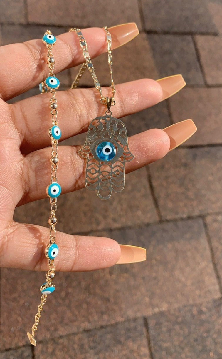 🧿 Hamsa Blue Evil Eye Charm Necklace